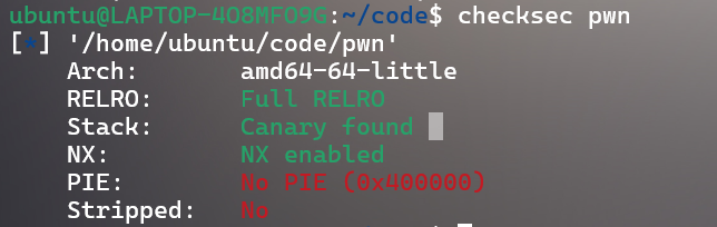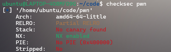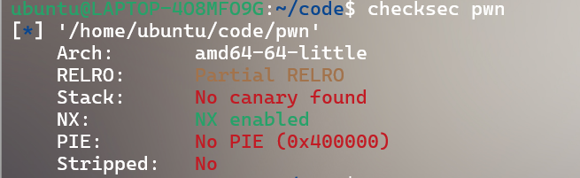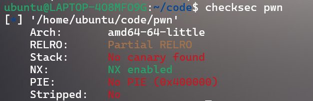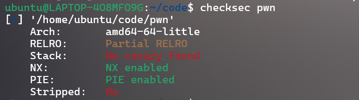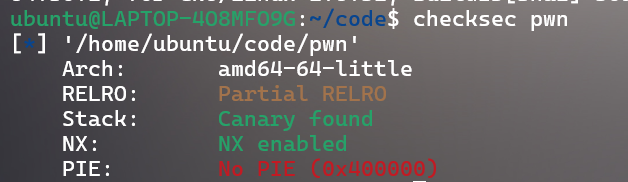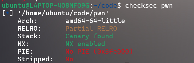 64位程序,开启了Canary和NX,部分开启RELRO