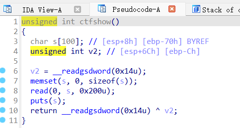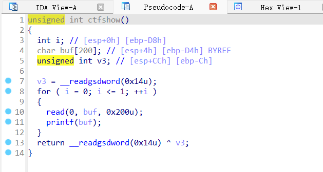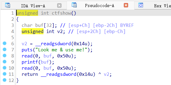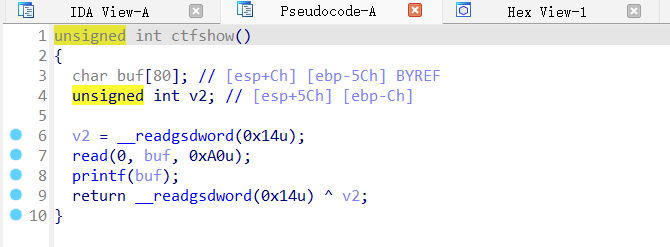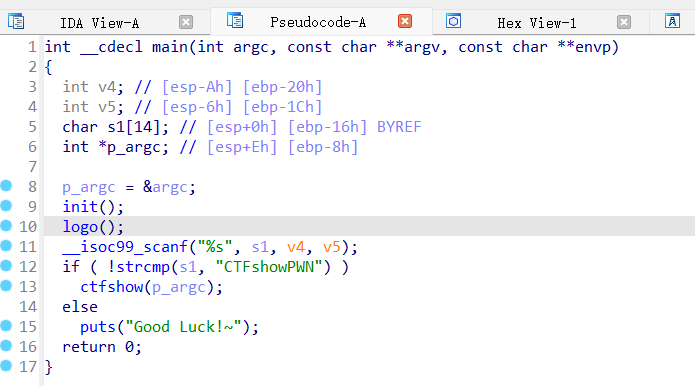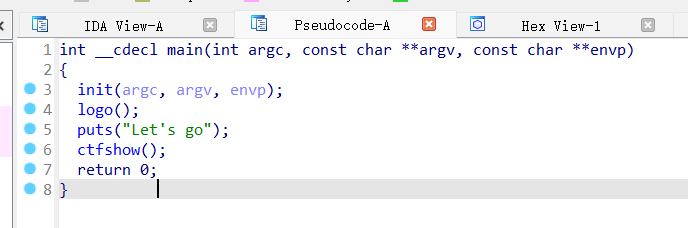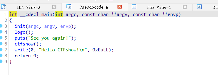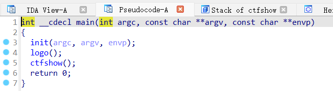 IDA查看main函数,跟进ctfshow函数: