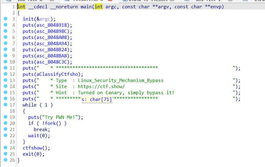 程序中存在fork函数,而且还是不断循环,跟进ctfshow函数: